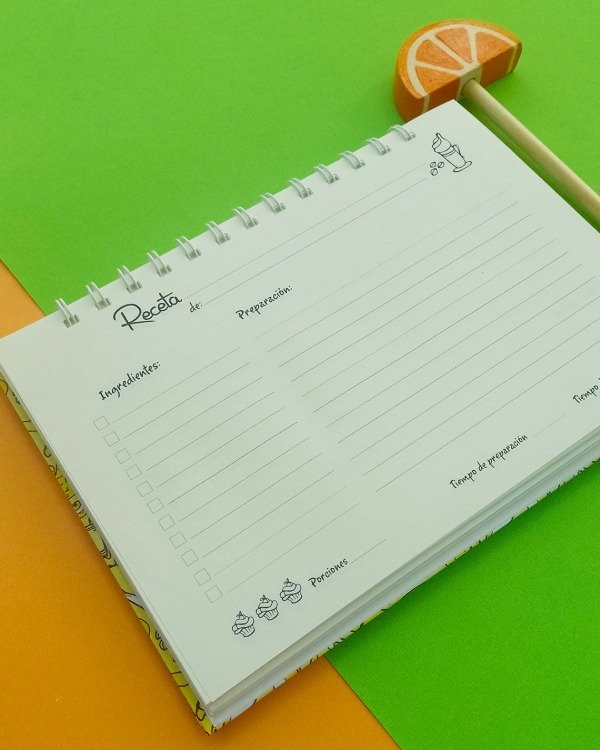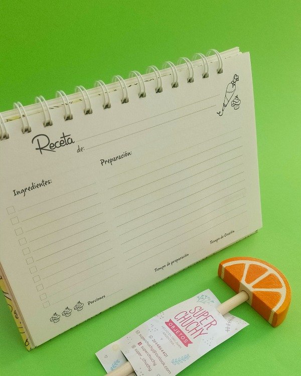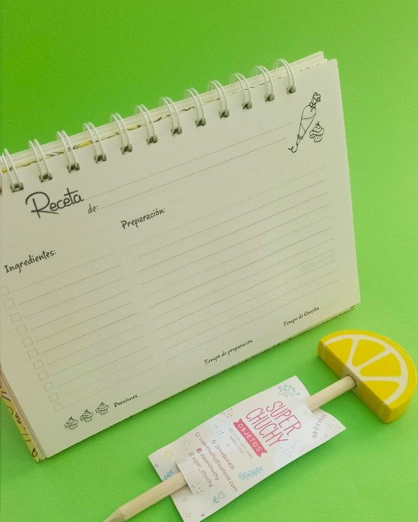 Este combo incluye un recetario ilustrado y un lápiz de fruta para que anotes cada receta con mucho color y estilo.
